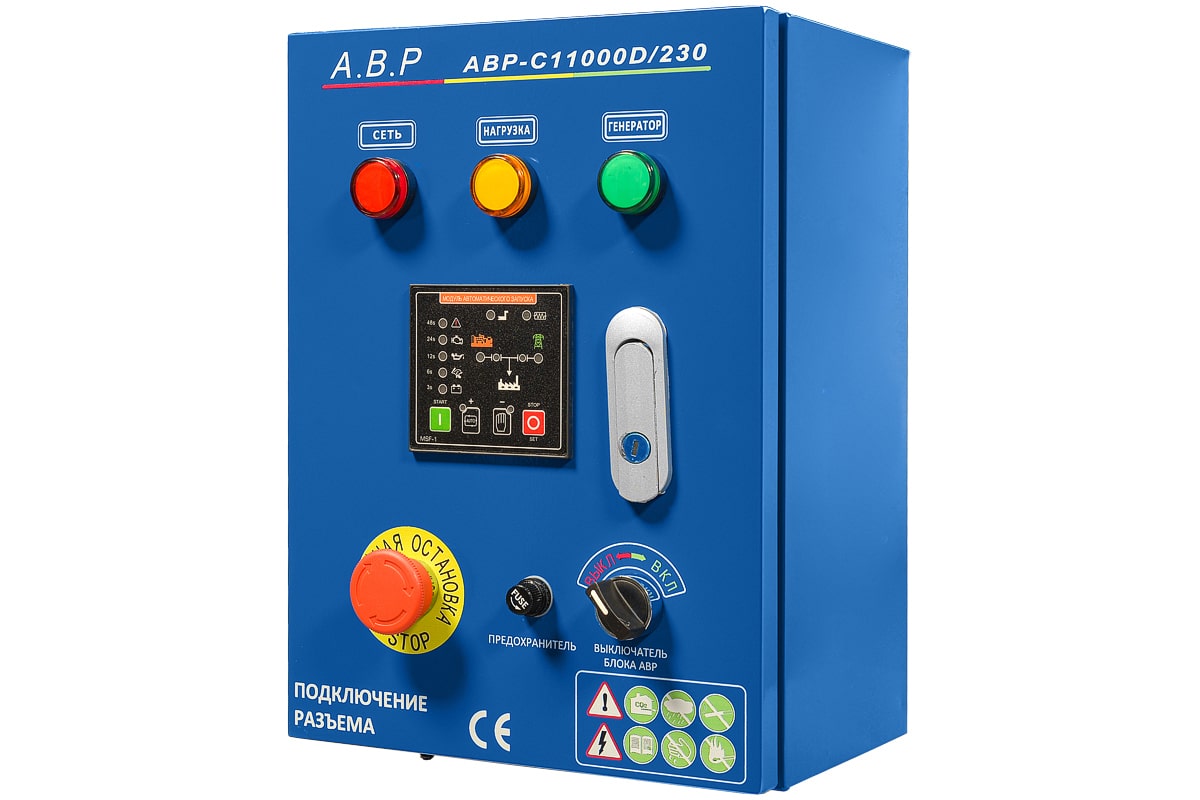 Предназначен для автоматического запуска дизельного генератора в момент пропадания основного источника электроэнергии и переключения нагрузки без вмешательства человека