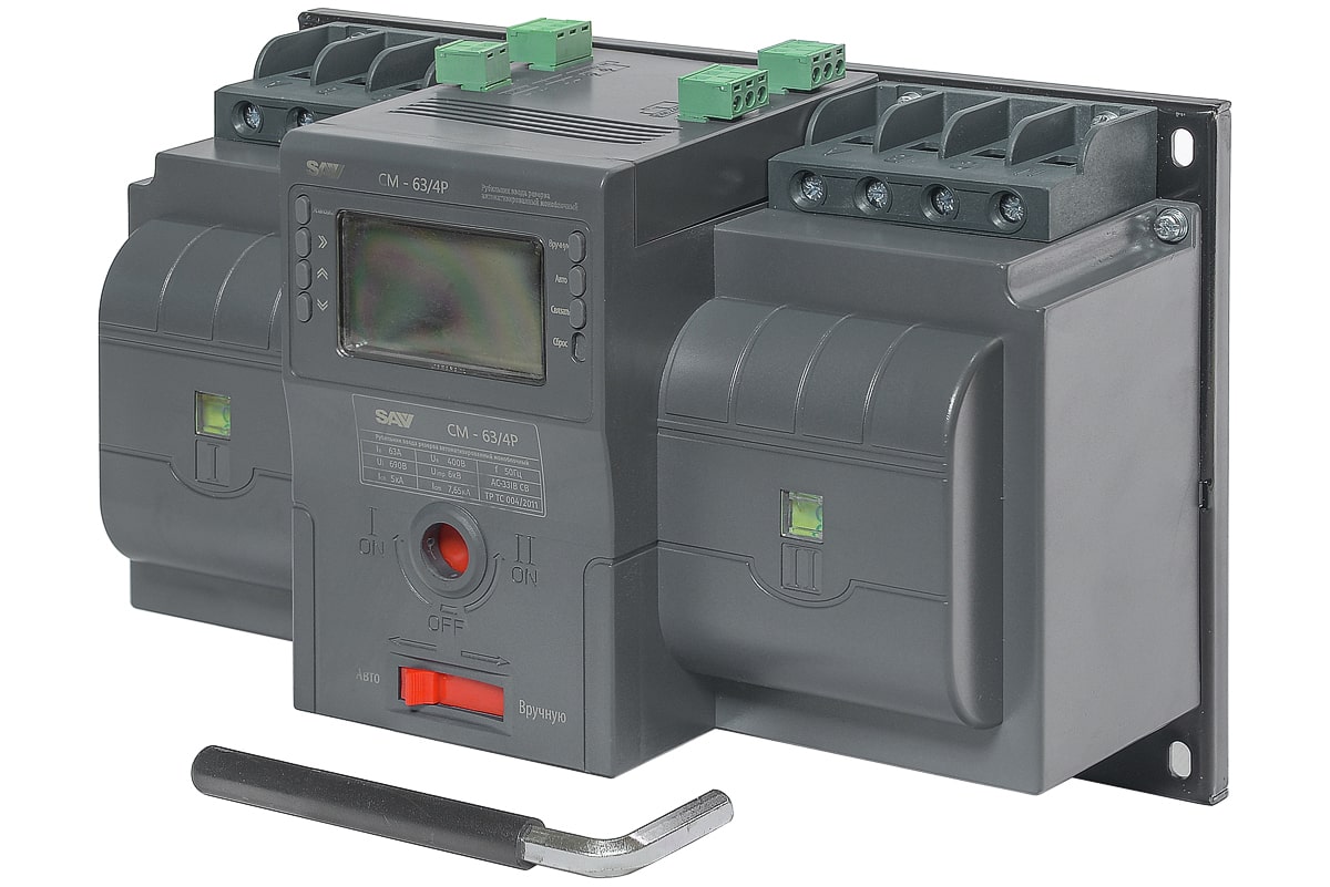 Рубильник реверсивный автоматизированный моноблочный (Блок автоматического ввода резерва АВР) CM-63/4P/Automated transfer switch 032942