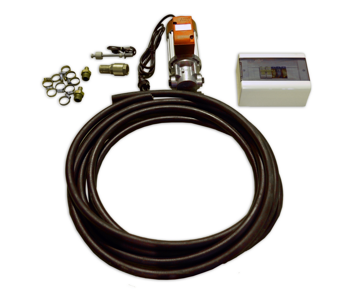 Для увеличения времени автономной работы, дизельные электростанции оснащаются системой автоматической подкачки топлива из внешней емкости. Подкачка топлива осуществляется во встроенный бак электростанции, при снижении уровня меньше допустимого. Работа системы подкачки топлива происходит полностью в автоматическом режиме. Объем внешней емкости подбирается потребителем в зависимости от необходимого времени автономной работы. Система подкачки топлива обеспечивает надежную непрерывную эксплуатацию электростанций в течении продолжительного периода времени. Система состоит из насоса перекачки дизтоплива Pressol 23034 с производительностью 60л/мин, датчика уровня жидкости, пульта подкачки, эл.магнитного клапана и штуцеров. Также стандартно комплектуется 6 метрами рукава 18мм., с возможностью увеличения длины по требованию заказчика.